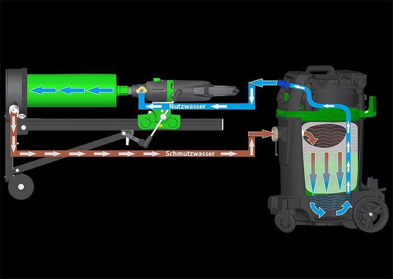Промышленный пылесос Eibenstock WRS 50 (Айбеншток ВРС 50) – циркуляционная система рециркуляции воды для всасывания, сбора и подачи воды при мокром бурении.